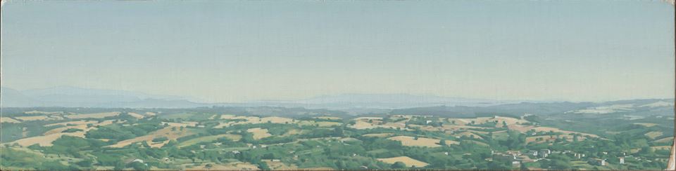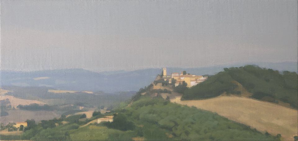 “Todi From Afar” 2009. Oil on linen mounted on wood, 22.3 x 40.1 cm