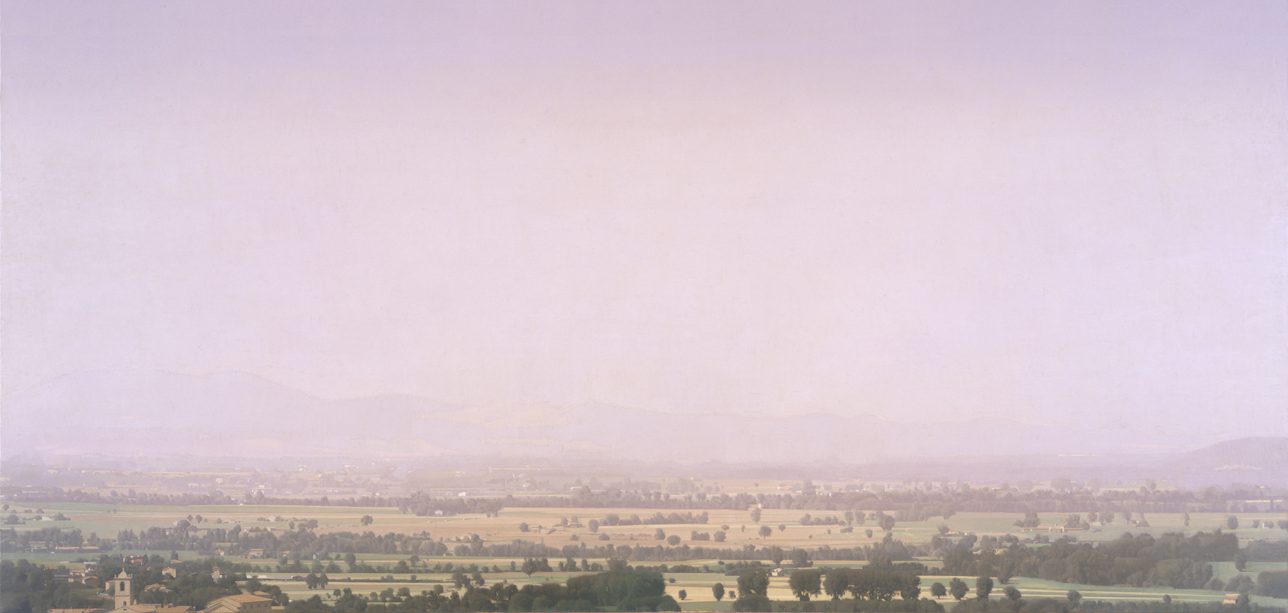 View From Civita Castellana, 2016, oil on linen mounted on wood, 17 x 47.3 cm.