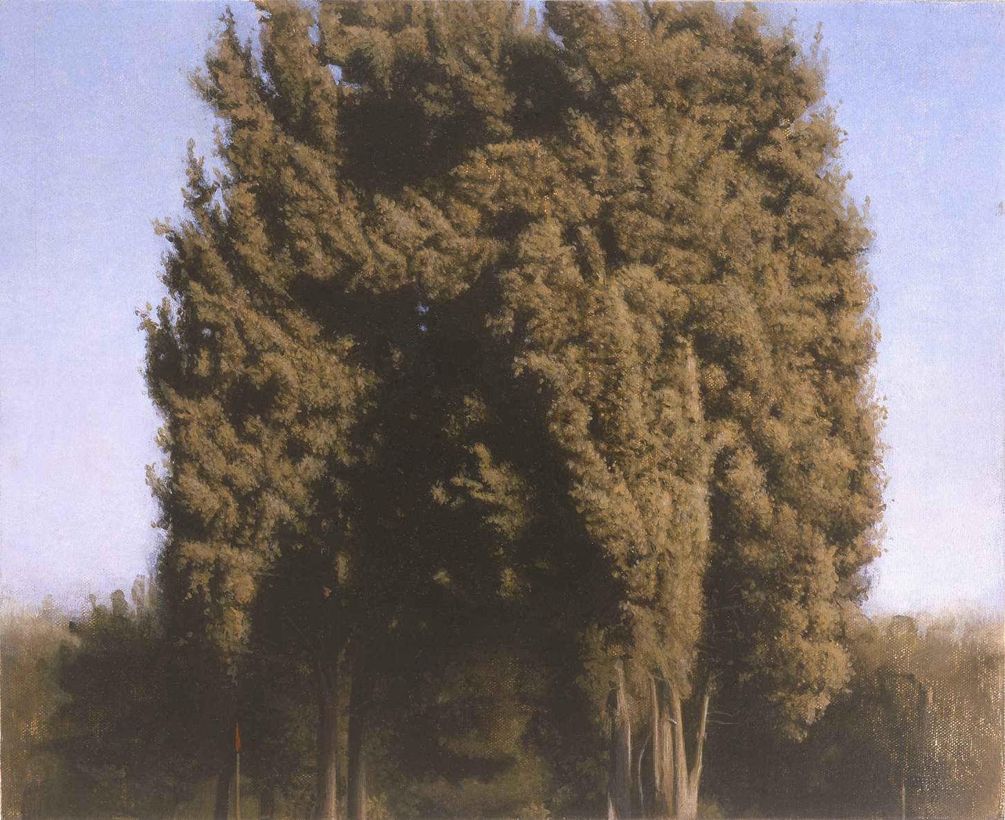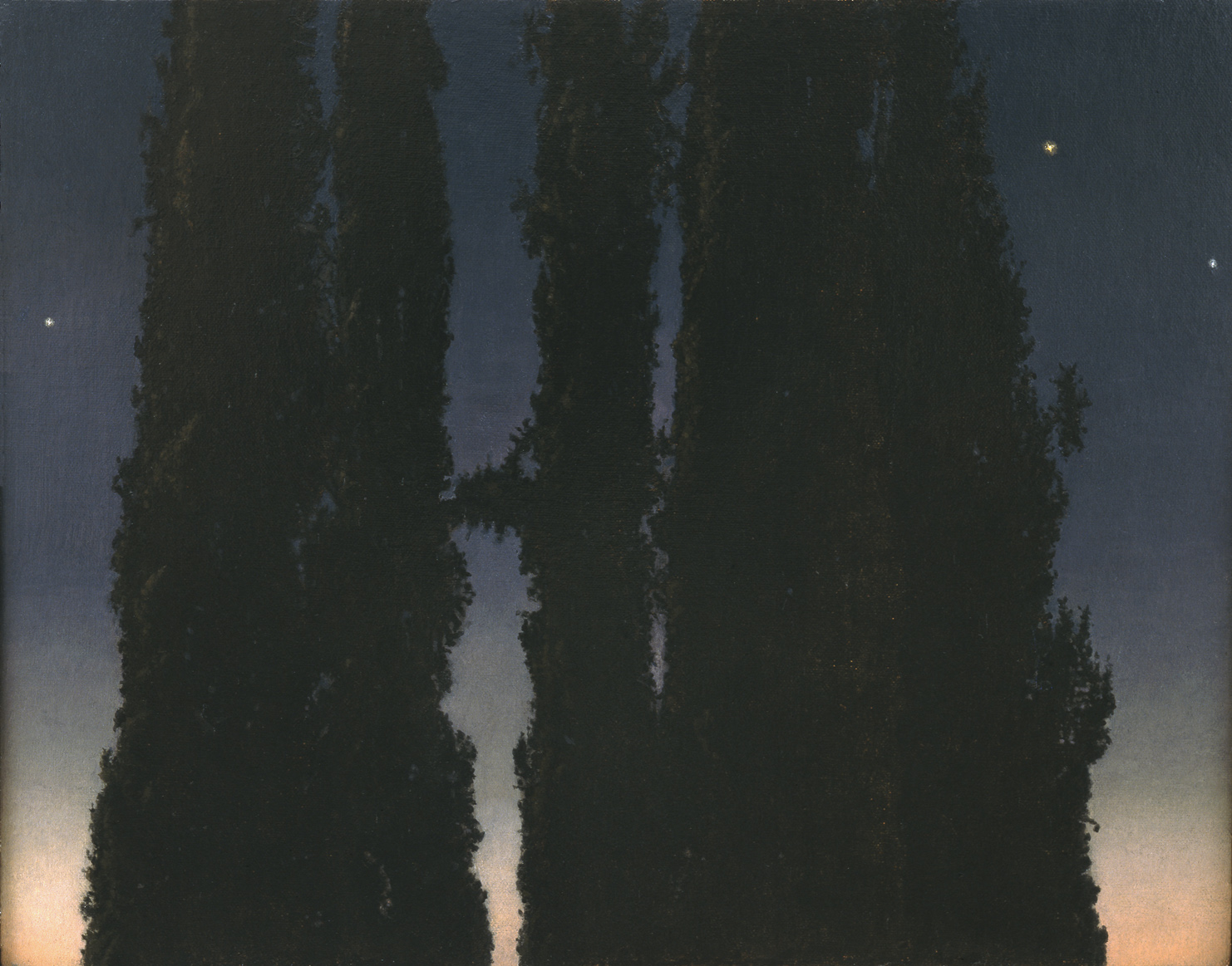 “A Cypress Assembly” 1999. Oil on canvas mounted on wood, 20.5 x 25 cm