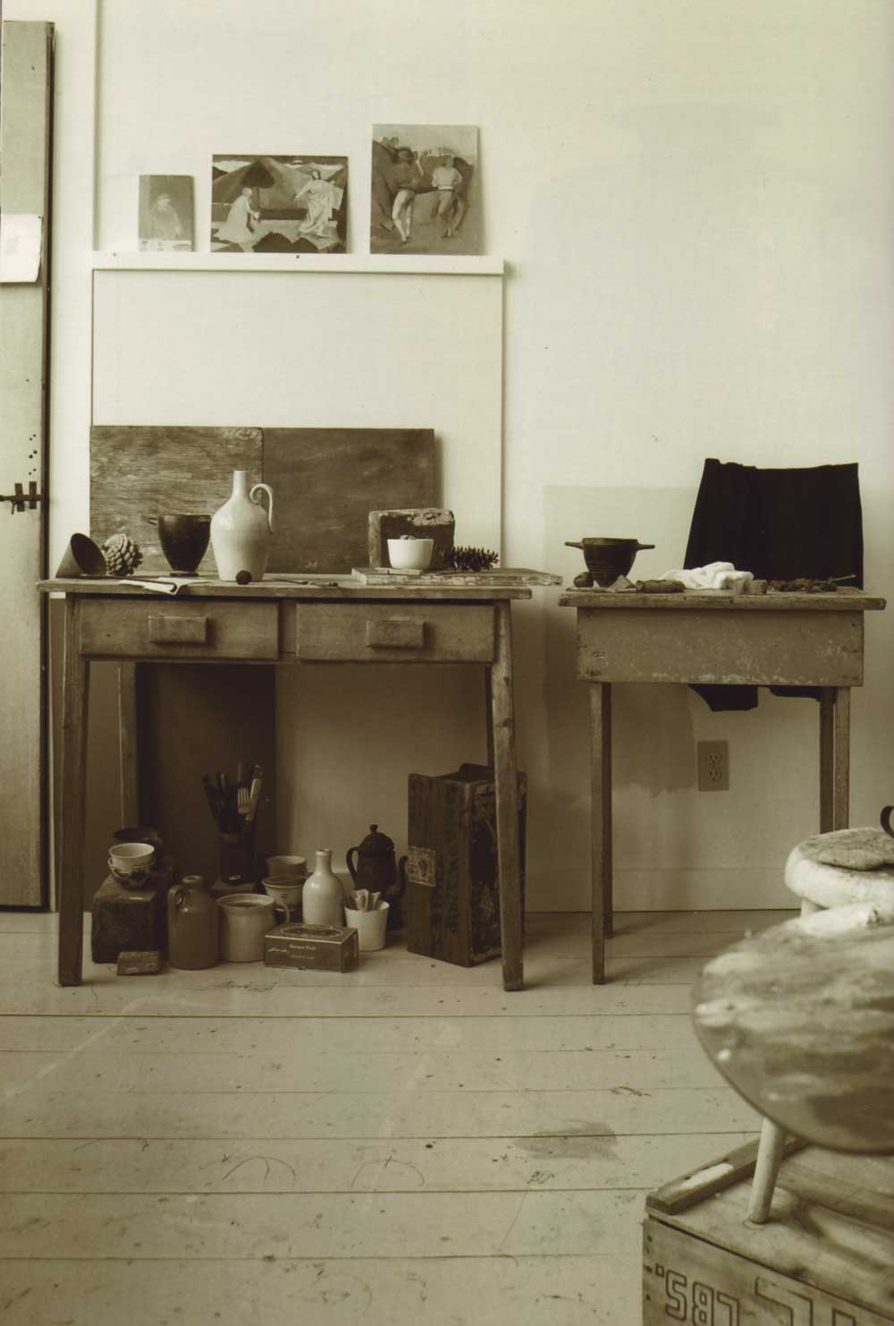 SJW: My studio moved from an outbuilding to inside the house when we built the addition—that was about twenty years ago. It is a small space on the second floor—the north facing windows look out onto a small orchard and a hillside pasture usually occupied by our neighbor’s draft horses. The light is beautiful and plentiful. In the winter months even more so, as the light is not only reflecting off the sky but also off the big expanse of snow, which usually is with us from November through mid-April.