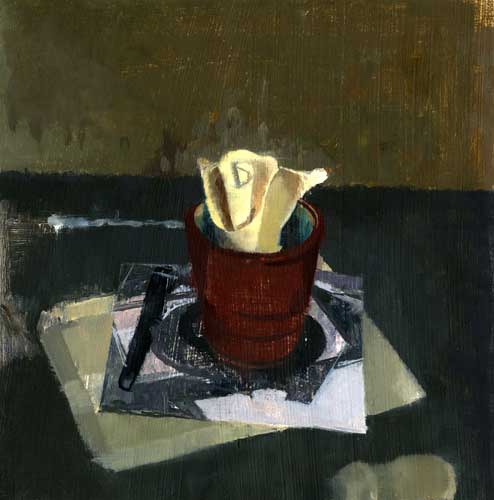 How I arrived at still life is a more complicated affair. My first body of work following my school years was a series of narrative, largely autobiographical figure compositions. I worked on those for a number of years and they became increasingly, overwhelmingly, embarrassingly influenced by Balthus. It’s difficult to fully express the hopelessness I came to feel during this time. Balthus was everything—everywhere I looked I imagined a Balthus painting, every tree in the park was a Balthus tree, every grouping of people a Balthus street scene. I had been working on my own for more than ten years and was facing the possibility that I would never have an idea of my own and instead was destined to a lifetime of making third-rate imitations of the painter I most admired. These paintings were more or less completely invented. I had pretty much stopped working from observation and so there was also a feeling of coming up against the limits of my own imagination. I am remembering something Cezanne supposedly said—”I hate the imagination”—I don’t remember where I read this. Sometimes I wonder if I have made it up for my own convenience! Such a radical thing to say and something I so understand as a limitation of my own temperament. In any case, in my despair, I turned to still life as a way to feel the ground under my feet. I had turned to still life and also the landscape and an occasional figure study before—during times of feeling confused. Once again I thought it only would be something temporary. And now, almost thirty years later, I still can catch myself thinking I am only in a temporary phase before I return again to the human figure.