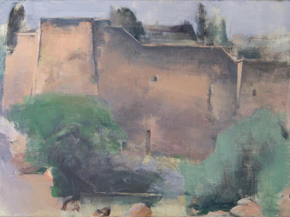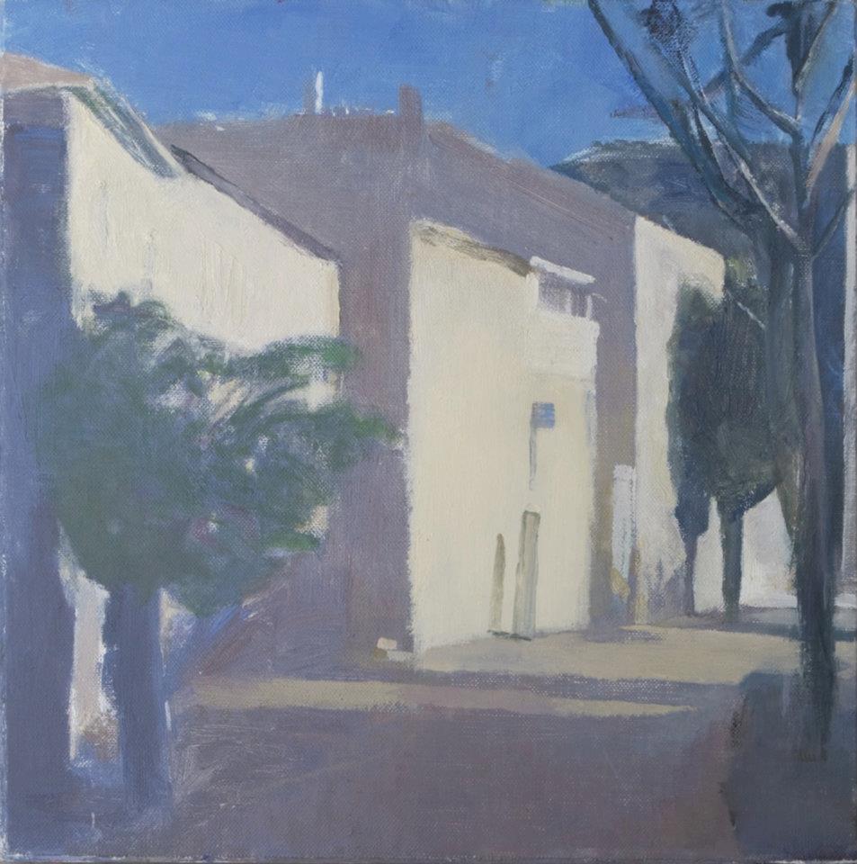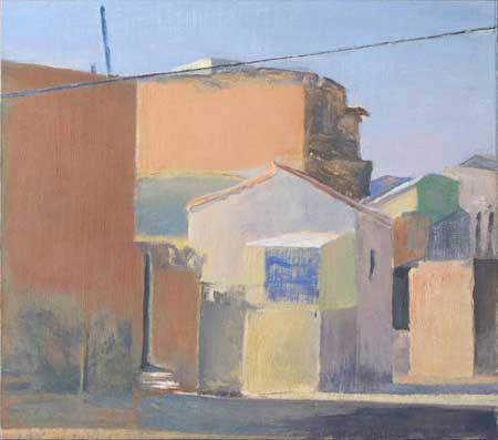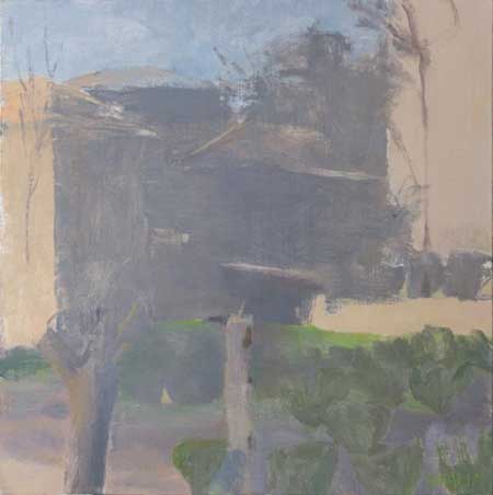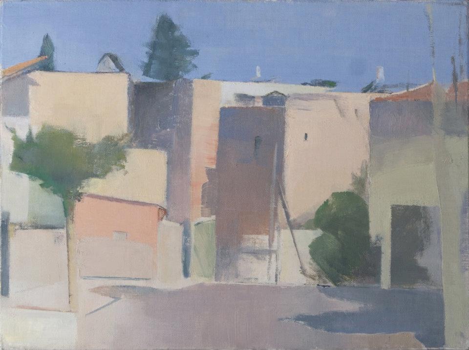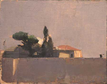 , and it’s a good starting point. I try to make the big statement with as few colors as possible. I was taught to make the first few spots really right, not approximate, and I still try to do that. It doesn’t mean they’re never changed later. Actually I try as much as possible to paint as I want it to look in the end, aiming for a premier coup even though I don’t usually finish in one shot any more. I try to follow Lennart Anderson’s rule of comparing colors and looking for similarities – this helps to create unity. For example, sky coIor sometimes serves as the basis of tree or shadow color. I worry much less about literal color than I once did; if I can make a building and the tree next to it out of the same color, I do. If they’re close enough in value in nature, it will work on the canvas. This has developed as I found it necessary to work faster to get down a motif outside – the light changes very quickly in Israel – so I’ve developed kind of a shorthand, which has become my language. Sometimes I lay in a really big area with one color, just building the forms by painting with it thicker or thinner. Then I can go back into that and add accents or local color. If a spot needs adjustment I add color to the spot on the canvas, altering it by mixing on the canvas. If I can’t take a satisfactory step forward in one area of the painting, I move to another area. If an area’s too dark or wrong I scrape it on the spot, and the resulting transparency can sometimes be used. A landscape will sometimes radiate one dominant color, and that will be the key to paint in. Urban landscape is more fragmented and patchy than rural or pastoral areas, and so can be very challenging.