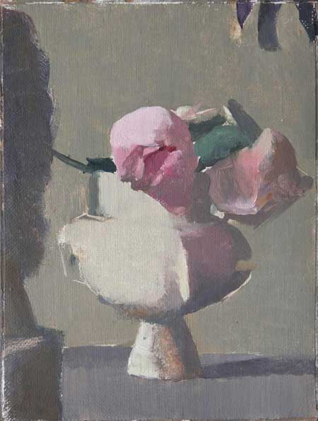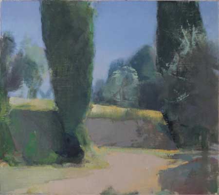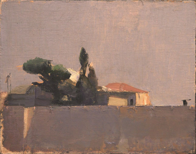 The abstract elements of a motif and its pattern of dark and light have to be very clear to me. Shapes need to be wonderful. I like to manipulate shapes for composition, and am drawn by the emotive power of shape. The genius of the Sienese painters in their control of shape has become a preoccupation. Figure/ground ambivalence is something that’s becoming increasingly interesting to me, and I expect will absorb me more with time. Over the past few years I’ve become more interested in a certain tension between the abstract qualities of the surface and the elements of the picture. However, I’m pretty sure I don’t really want to be an abstract painter – I have a desire to depict the world around me, as Albert York said, “put it into a design.” I find it interesting when a painting makes us notice the abstract, non-objective qualities of objects.