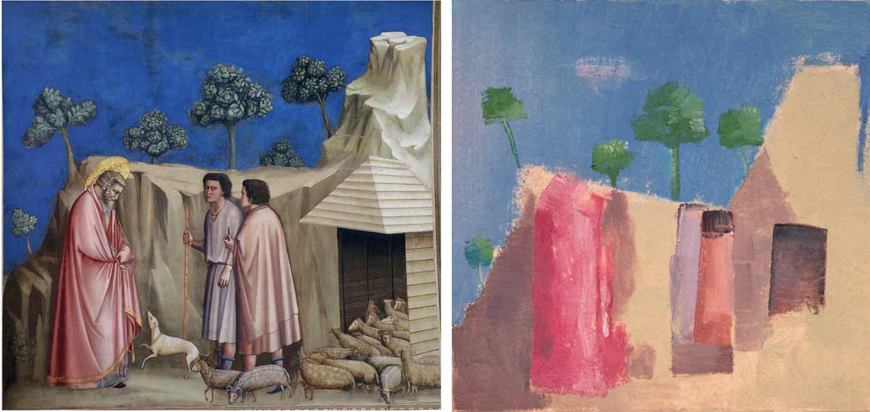 Years later, when we began to spend summers in Italy, seeing Roman fresco painting left a similarly deep and indelible impression. I had connected with this source period of painting years before through books, but seeing the actual frescoes, experiencing the beauty of their color and handling, their balanced compositions and measured intervals, was extremely exciting for me and became an ideal which still leads me. Italy in general has been very formative. The great works we return to year after year – the Pieros, the Giottos, the Brancacci Chapel, San Marco, Museo Morandi, the masterpieces of Siena, are new and profoundly moving each year. I have always been attracted to great art that possesses a degree of primitiveness – like many of the frescoes and works of the early Renaissance. I find it to have a certain power, a special beauty, and I think seeing the great masterpieces and antiquities of Italy planted in me the desire that my work should feel connected to these wonderful works of the distant past.