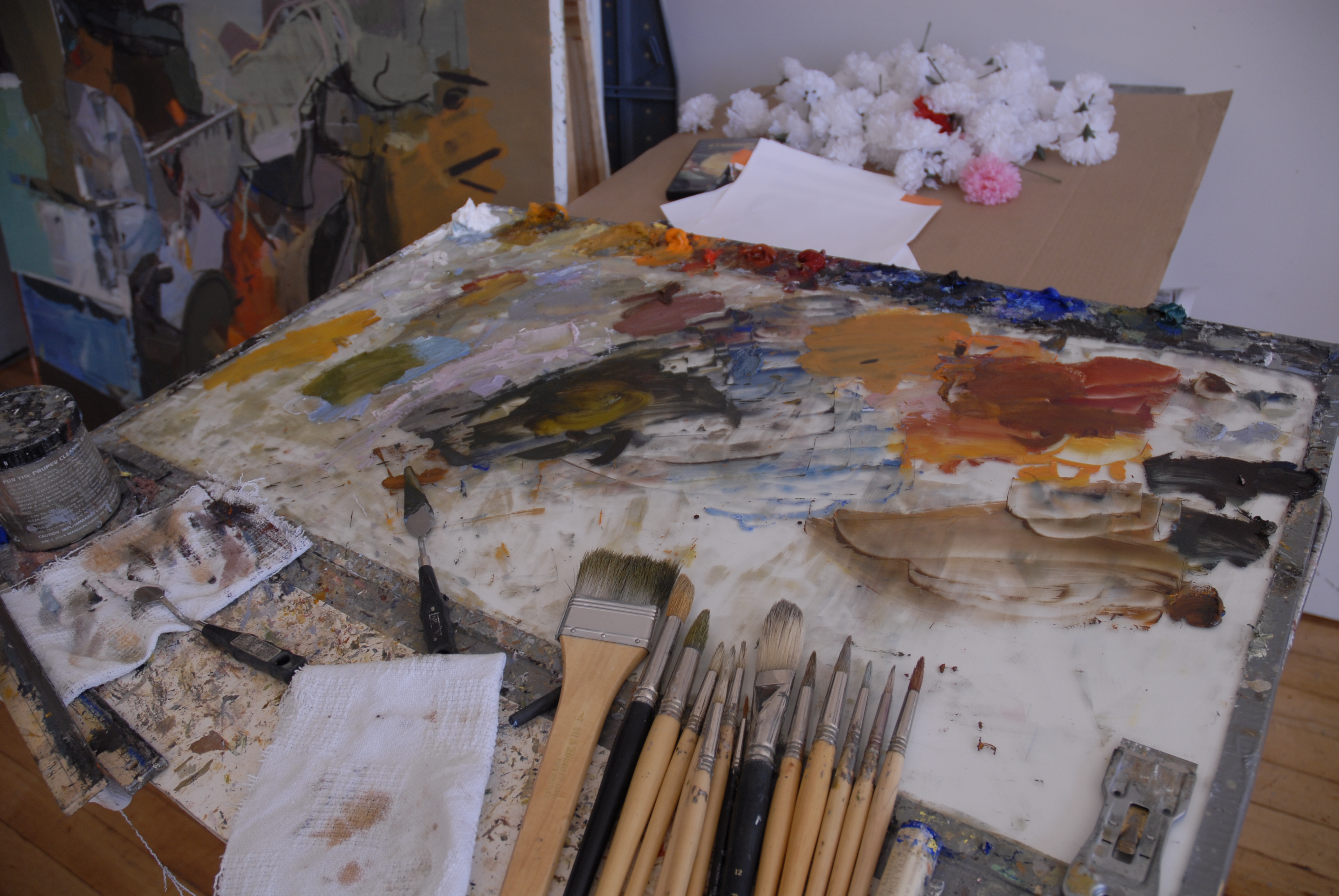 My paints vary from Robert Doak, RGH, Williamsburg and Old Holland. I used much nicer paint in undergrad and grad school ( Old Holland, Mussini and BlockX). Since then I have found paint that is closer to the consistency I like to paint with right out of the tube. I don’t believe in too much medium, so this is quite helpful. My colors vary, but these are what I have on my palette now: