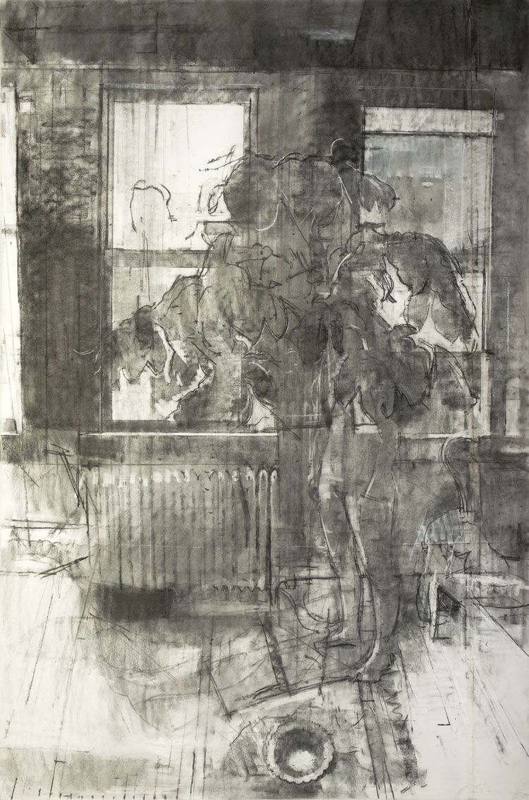 “Interior,” charcoal, graphite and conte on paper, 72 x 48 in, 2009